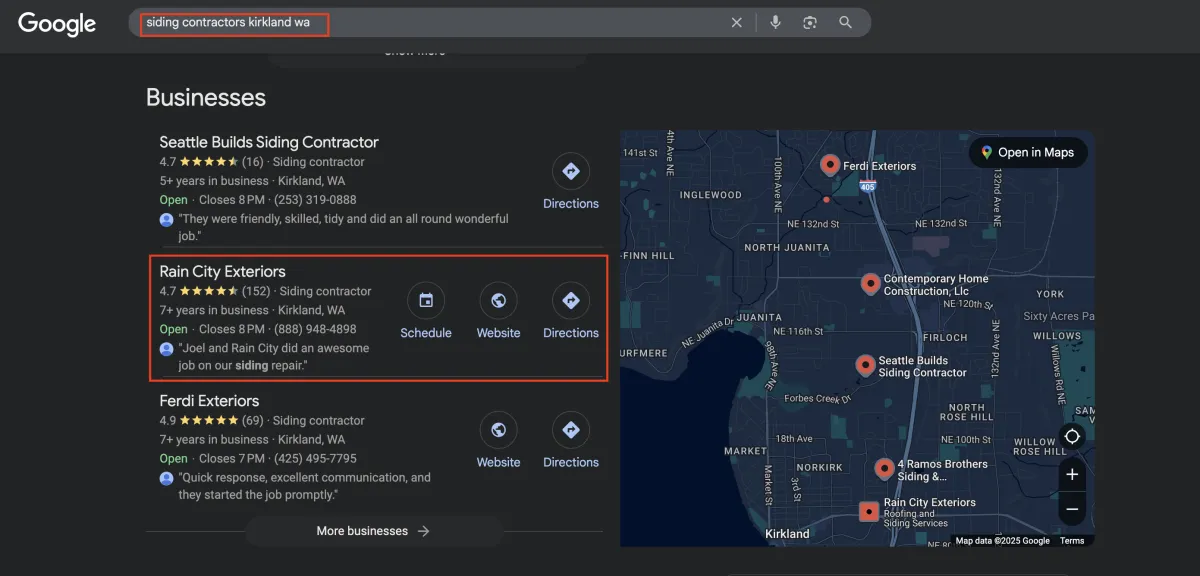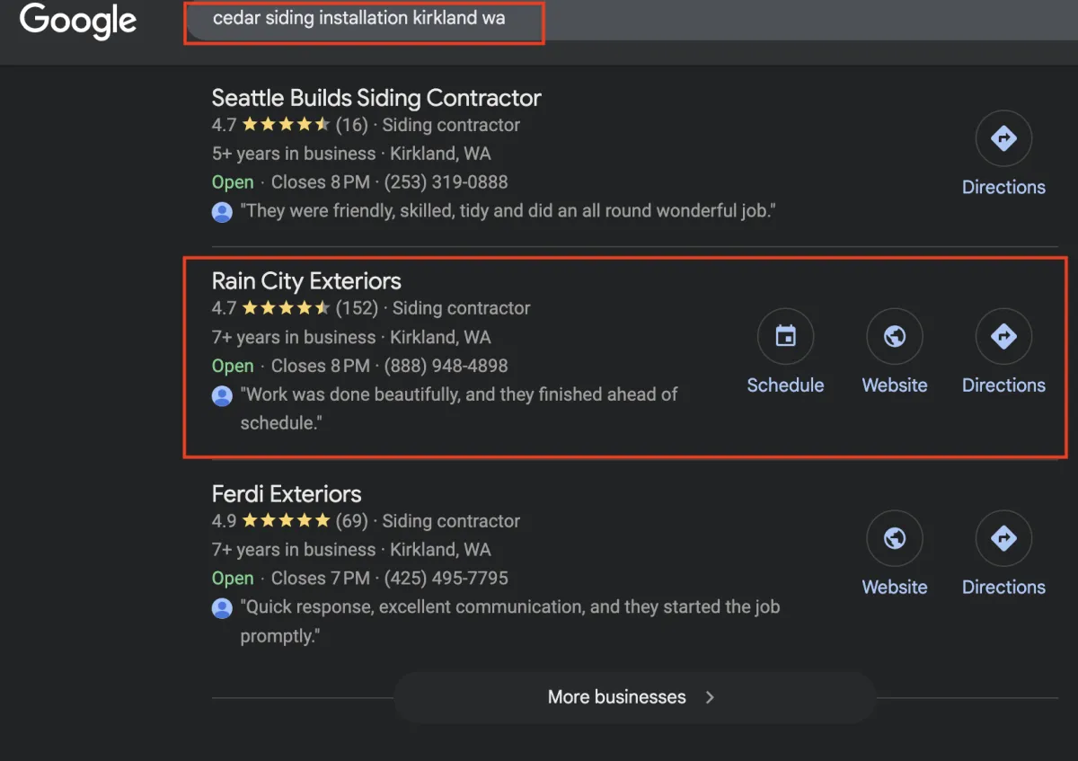 Our pricing is custom-tailored to your home service business’s goals, stage, and growth plan. Pricing depends on the scope of work, how fast you want to grow, and which SEO channels we manage, for example, maps, SERPS, and generative AI. Every engagement is designed to generate a return well above your investment, so you’re booking more jobs profitably.